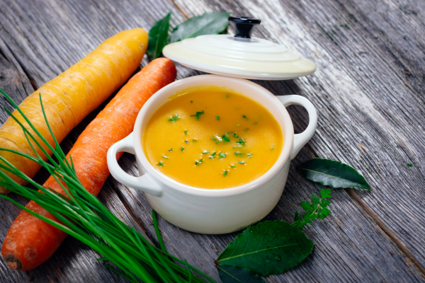 - Use um liquidificador de mão para triturar parcialmente a sopa, deixando alguns pedaços de legumes inteiros para obter textura.