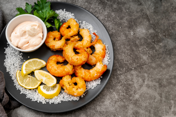 5. Sirva os camarões empanados quentes, acompanhados do alioli frio para mergulhar.