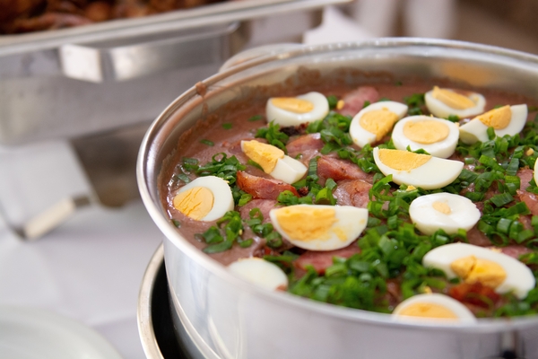 Em primeiro lugar, é preciso bater o feijão cozido e o caldo de feijão no liquidificador até que a mistura tenha uma consistência pastosa. Depois disso, é hora de refogar a cebola e o alho picados no azeite de oliva espanhol até dourar, e então acrescentar a pasta de feijão. Após esperar cerca de dois minutos, basta adicionar a farinha de mandioca e continuar mexendo por alguns minutos antes de temperar com o sal, a pimenta e a cebolinha. Assim que a mistura desses ingredientes se tornar espessa é necessário retirar a panela do fogo e esperar esfriar. Feito isso, é só servir com os acompanhamentos desejados.